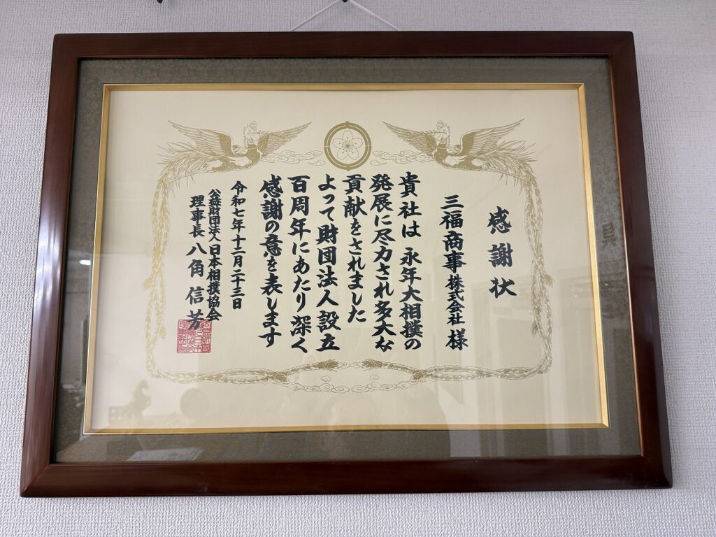 このたび三福商事株式会社は、令和七年に執り行われた日本相撲協会設立100周年記念行事へご招待いただきました。